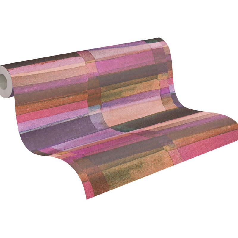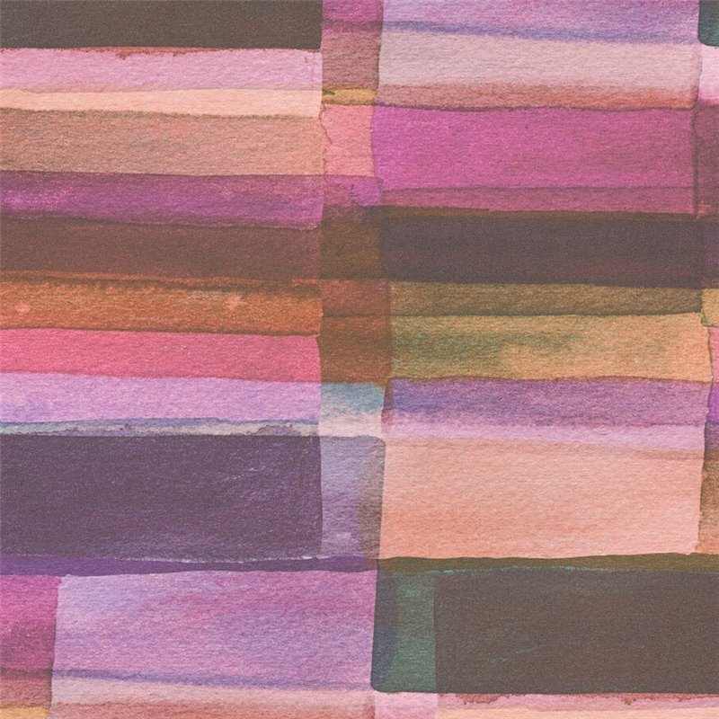 El papel pintado Painted Petals 2028782252 multicolor con un patrón de cuadros superpuestos efecto acuarela, la combinación de colores crea un efecto dinámico y artístico que aporta profundidad y textura visual.