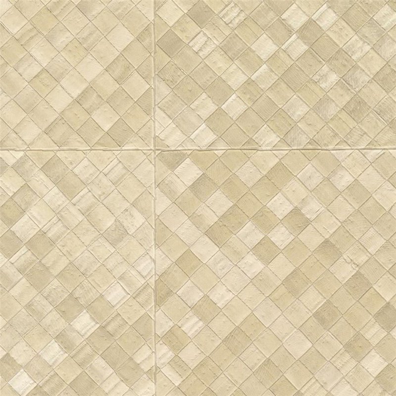 Papel pintado con efecto hojas de palma tejidas en beige crema