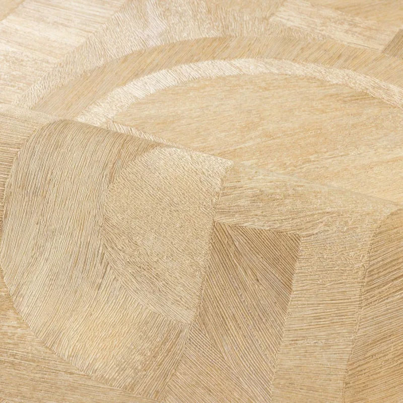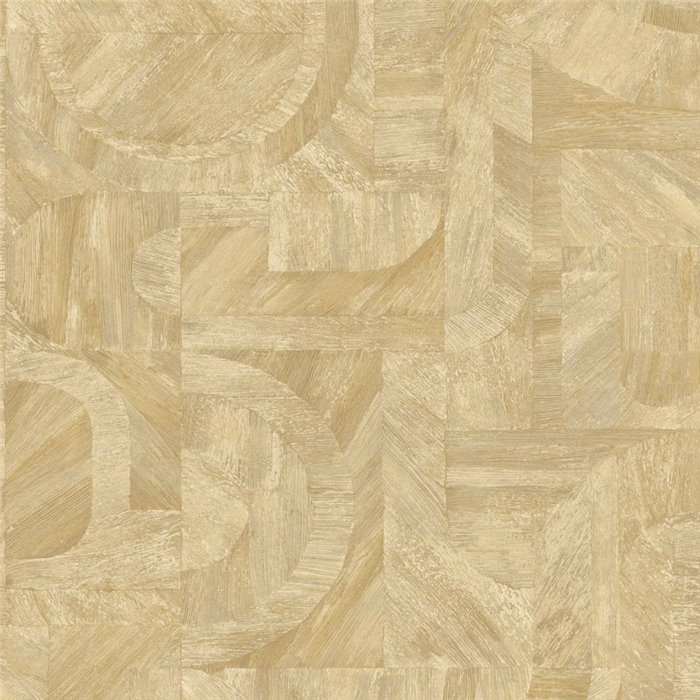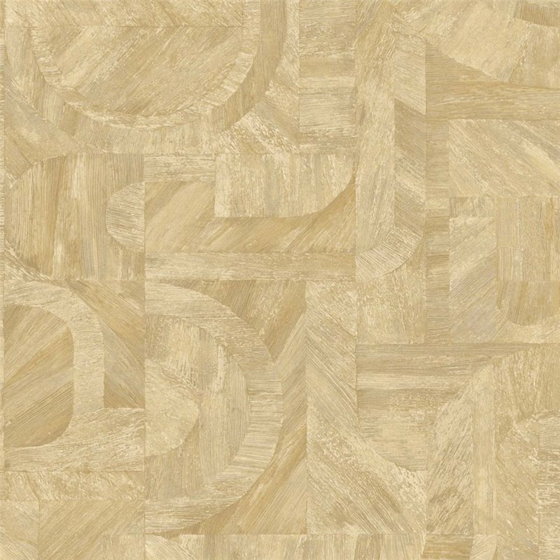 Papel pintado madera geométrica intarsia beige claro de Casamance, colección Nature Sur Mesure. Calidad vinílico lavable, medidas: 70 cm x 10 m.