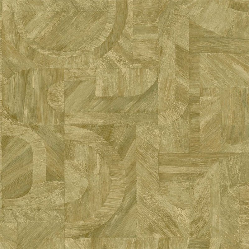 Papel pintado madera mosaico intarsia verde elegante de Casamance, colección Nature Sur Mesure. Calidad vinílico lavable, medidas: 70 cm x 10 m.
