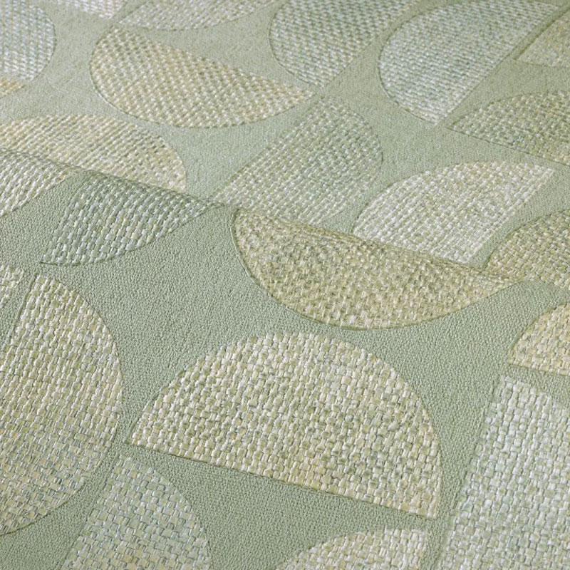 Papel pintado madera con textura rafia verde almendra de Casamance, colección Nature Sur Mesure. Calidad vinílico lavable, medidas: 70 cm x 10 m.