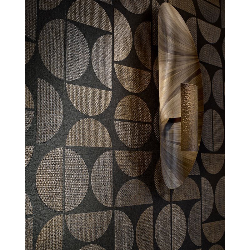 Papel pintado madera rafia geométrica ocre de Casamance, colección Nature Sur Mesure. Calidad vinílico lavable, medidas: 70 cm x 10 m.