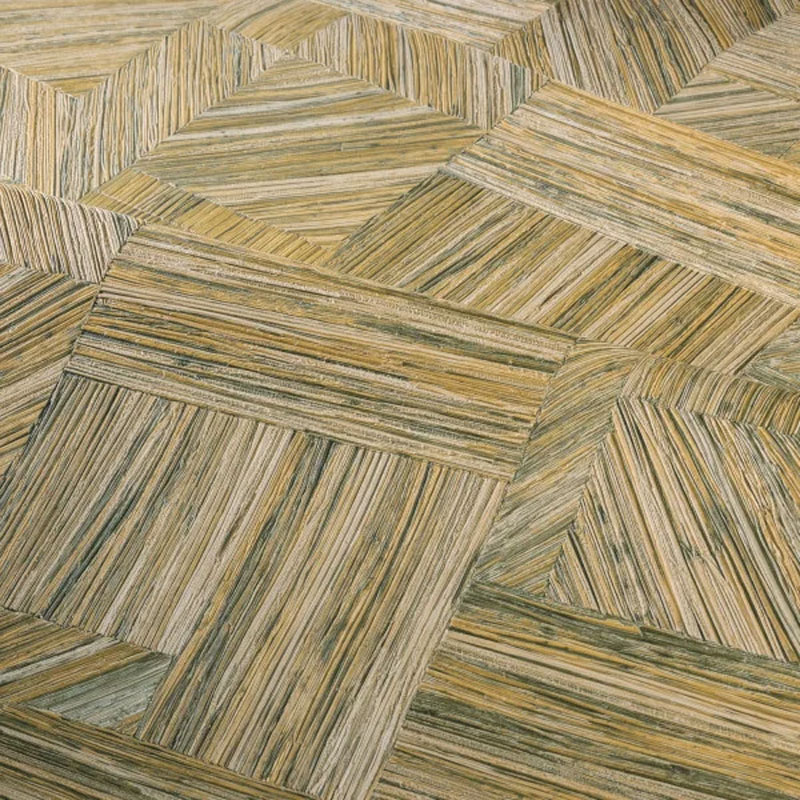 Papel pintado madera geométrica verde de Casamance, colección Nature Sur Mesure. Calidad vinílico lavable, medidas: 1 x 10 m.