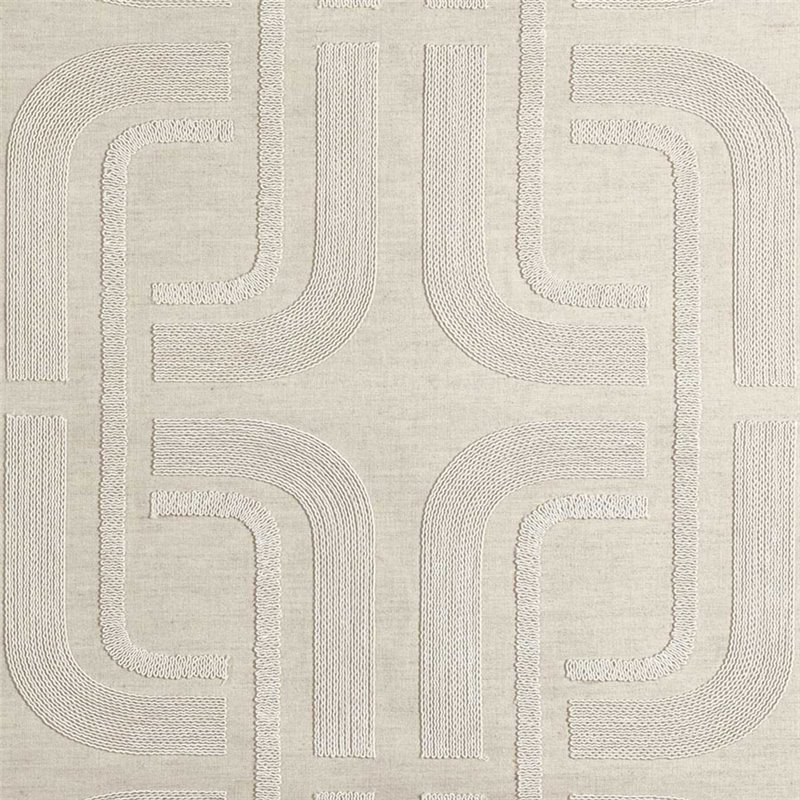 Casamance Sensation Blanc Ivoire combina sofisticación y naturalidad en un diseño geométrico bordado con hilo nacarado sobre una base de lino y algodón. Su patrón de líneas sobrias y ángulos redondeados aporta un refinamiento único, destacando el equilibrio perfecto entre lo artesanal y lo moderno.