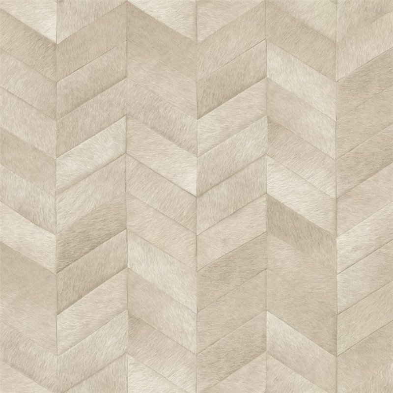 Papel pintado beige con textura efecto piel de potro y patrón chevron que mezcla modernidad y un acabado natural. Medidas del rollo: 1 x 10 metros