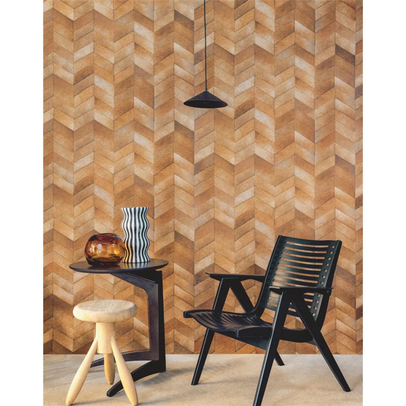 Papel pintado vinílico piel animal greige, patrón chevron que ofrece modernidad y textura. Medidas del rollo: 1 x 10 metros