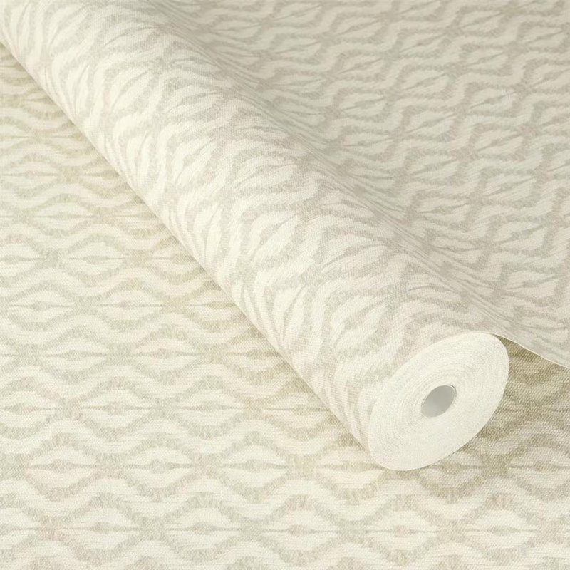 Este Papel pintado ikat beige diseñado para aportar dinamismo y equilibrio visual a paredes de interiores contemporáneos. Rasch Beachhouse 410655.