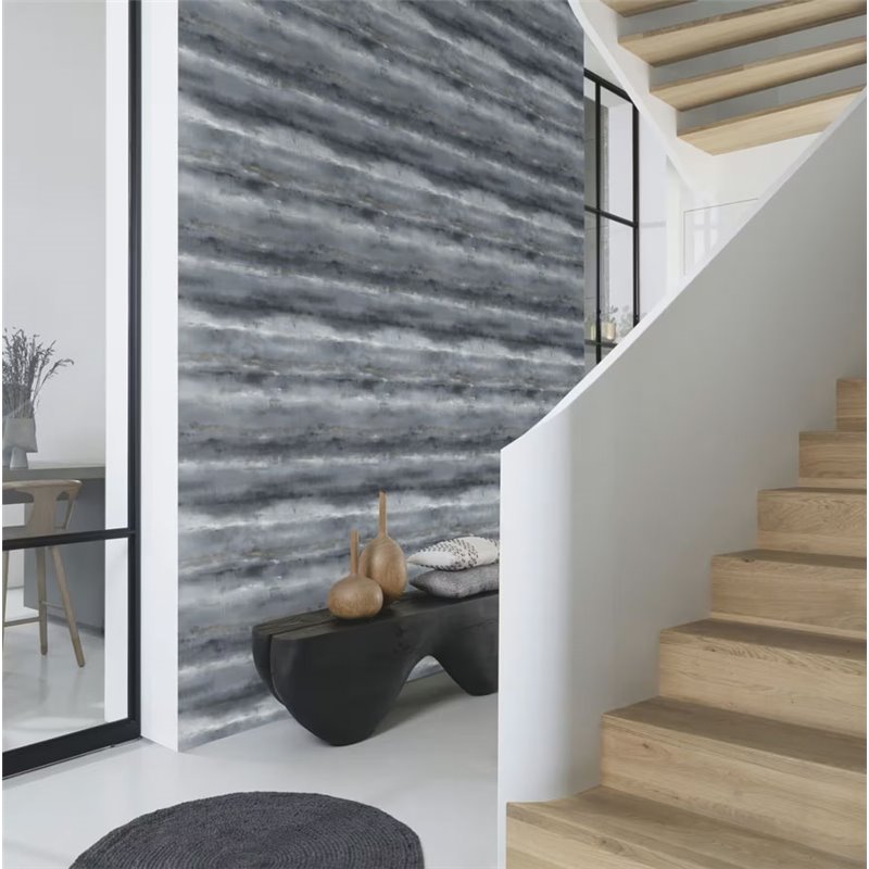 Este Papel pintado rayas abstractas azul con un acabado de calidad que enriquece visualmente la pared, creando un efecto envolvente y sereno. Rasch Florentine IV 481662.