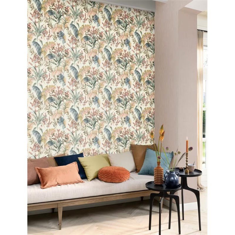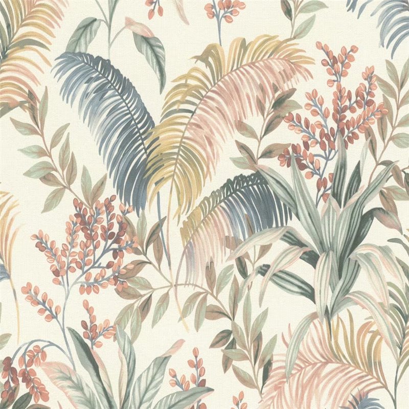 Este Papel pintado tropical azul plantas exóticas con un acabado de calidad que enriquece visualmente la pared, creando un efecto envolvente y sereno. Rasch Florentine IV 481938.