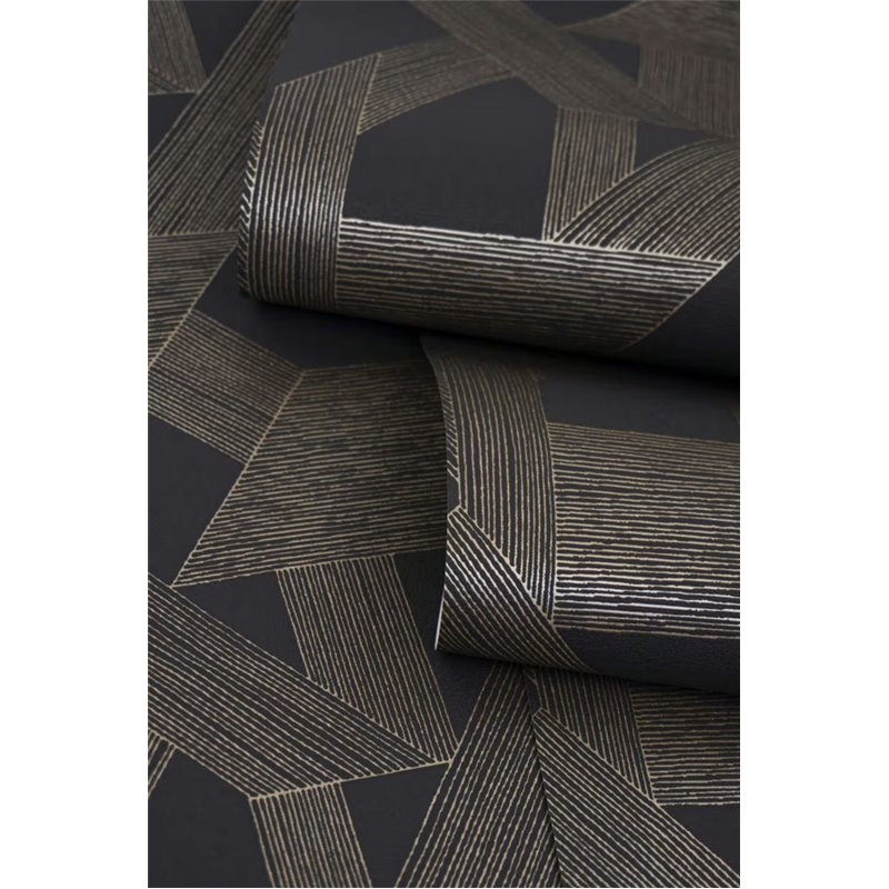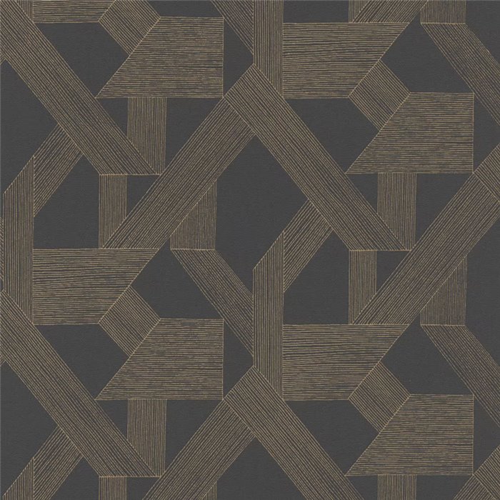 El mural Rasch Schöner Wohnen 366815 en negro y dorado presenta un diseño geométrico moderno con líneas elegantes que aportan sofisticación y dinamismo a cualquier espacio. Ideal para interiores contemporáneos. Medidas: 265 x 300 cm
