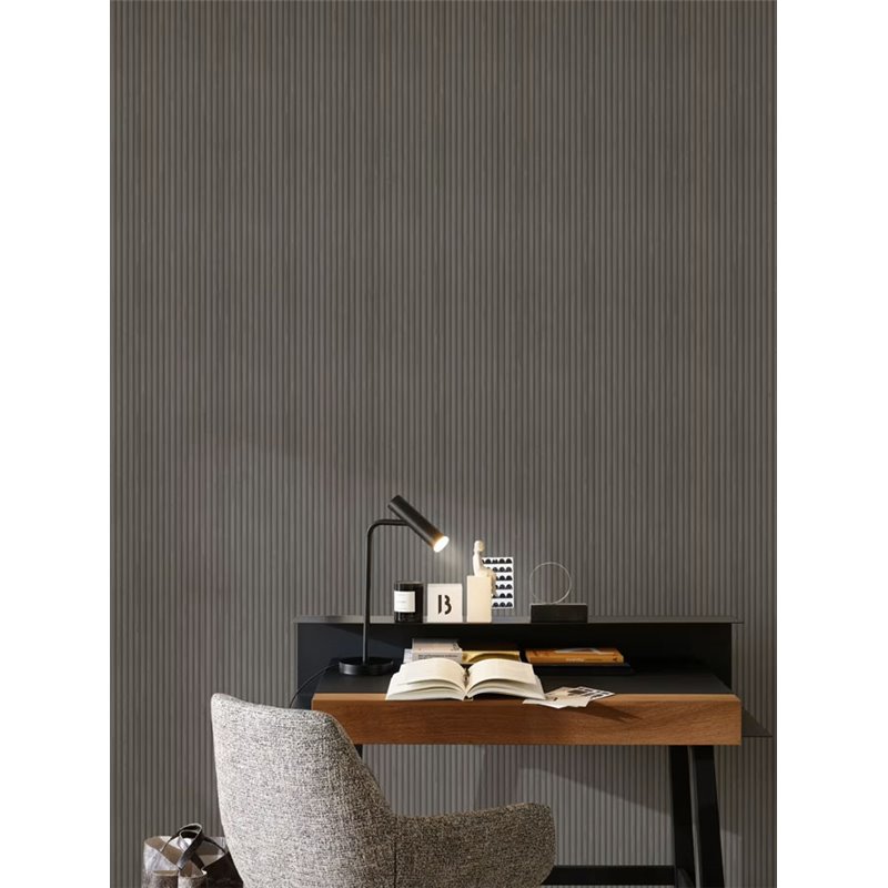 Este Papel pintado listones efecto madera gris una propuesta decorativa con gran versatilidad, capaz de realzar tanto estilos nórdicos como rústicos. Rasch Schöner Wohnen 600858.