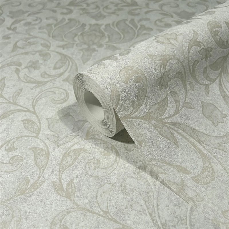 Papel pintado floral estilo damasco beige y gris, refleja buen gusto y modernidad. Marburg City Romance 35147.