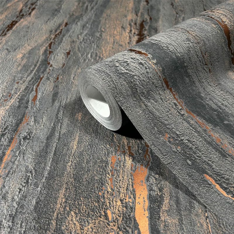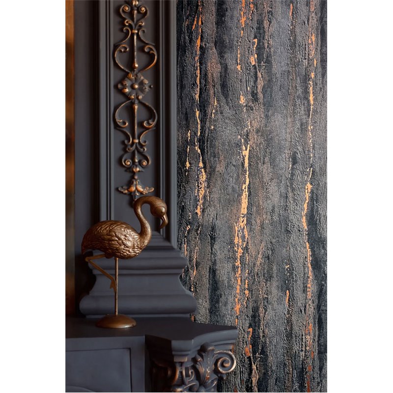 Papel pintado piedra antracita efecto yeso envejecido
