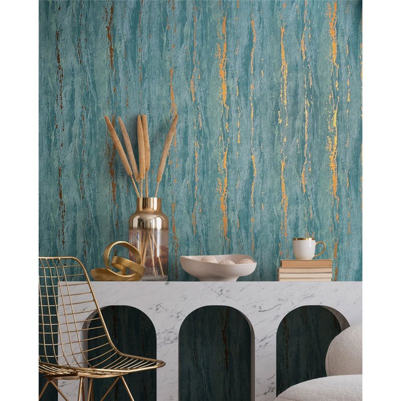 Un estilo que destaca en cualquier estancia, papel pintado textura erosionada verde turquesa Marburg City Romance 35167.