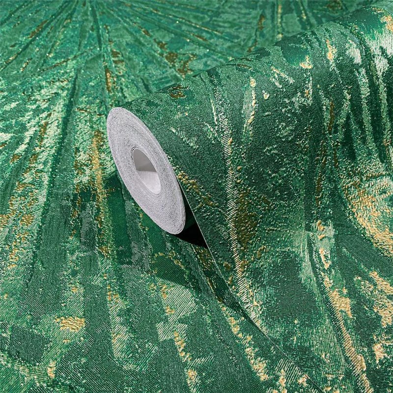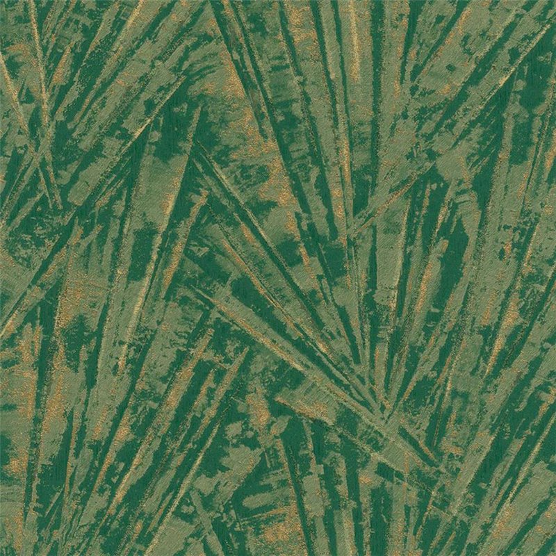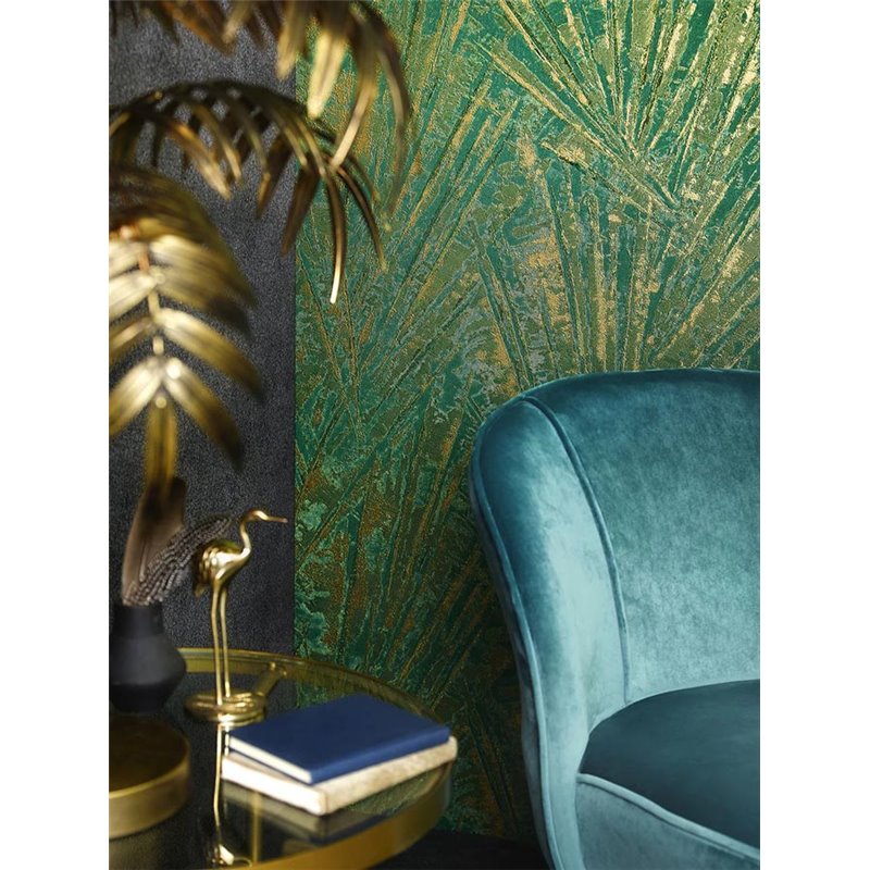 Papel pintado contemporáneo con líneas y hojas negro y dorado, aporta elegancia y personalidad. Marburg Papis Loveday 33705.