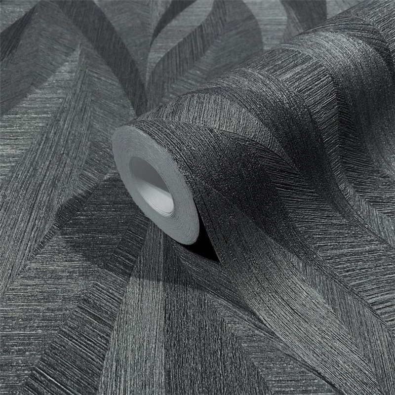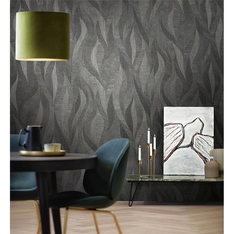 Papel pintado moderno gris patrón líneas curvas, perfecto para proyectos de interiorismo. Marburg Papis Loveday 33708.