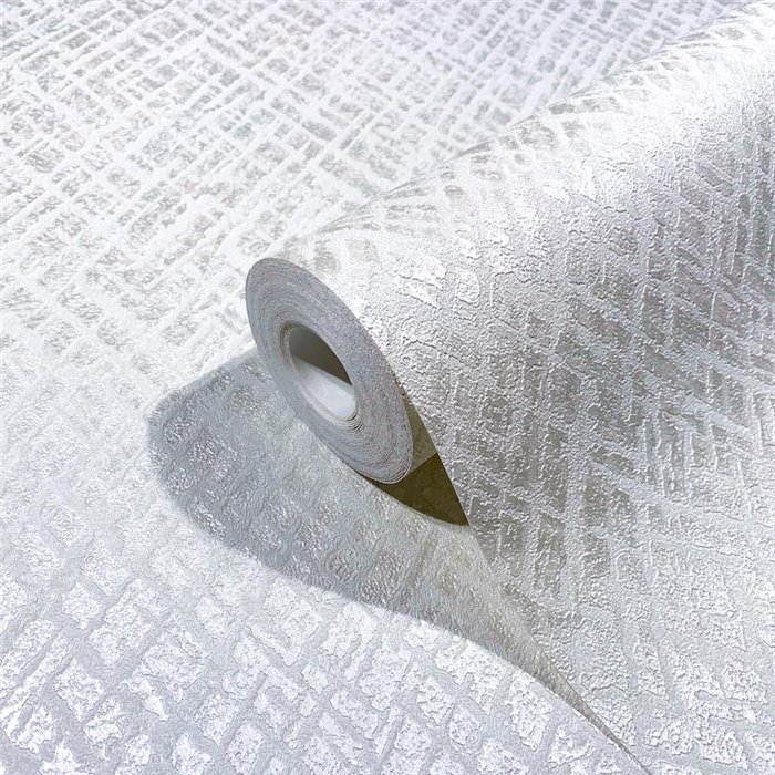 Papel pintado mosáico estilo étnico gris y plata moderno, ideal para destacar tus paredes. Marburg Papis Loveday 33720.