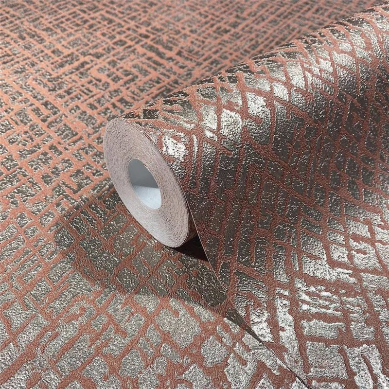 Decoración que envuelve y aporta identidad, papel pintado mosáico estilo étnico naranja y plateado Marburg Papis Loveday 33718.