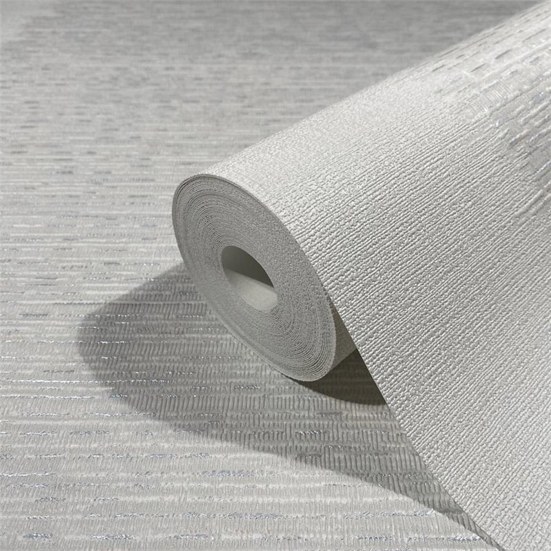 Papel pintado textura con líneas horizontales gris, aporta elegancia y personalidad. Marburg Papis Loveday 33744.