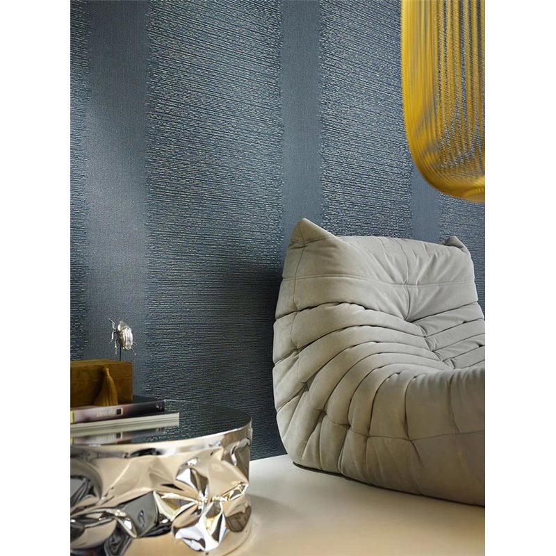 Papel pintado textura con líneas horizontales azul petróleo, con textura y diseño diferenciador. Marburg Papis Loveday 33748.