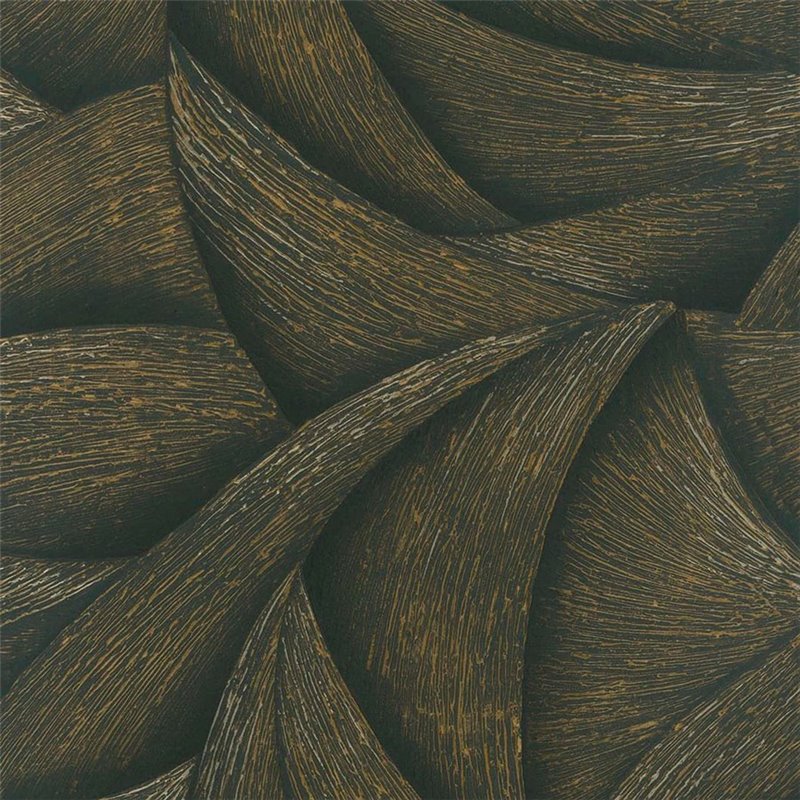 Papel pintado Ondas 3D negro y bronce moderno, ideal para destacar tus paredes. Marburg Ritus 35505.