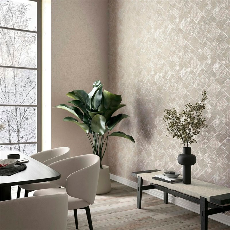 Diseñado para transformar tus espacios, papel pintado geométrico greige moderno Marburg Ritus 35510.