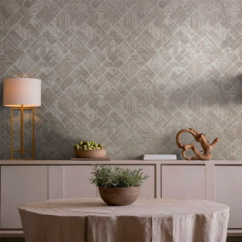 Papel pintado geométrico beige moderno, ideal para interiores con estilo. Marburg Ritus 35509.