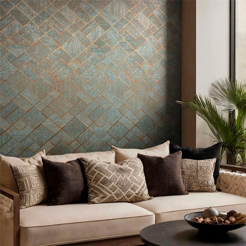 Papel pintado geométrico beige moderno, ideal para interiores con estilo. Marburg Ritus 35509.
