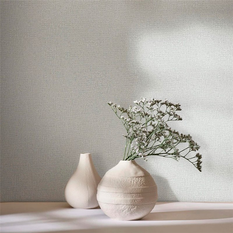 Papel pintado liso texturizado gris atemporal, ideal para interiores con estilo. Marburg Ritus 35517.