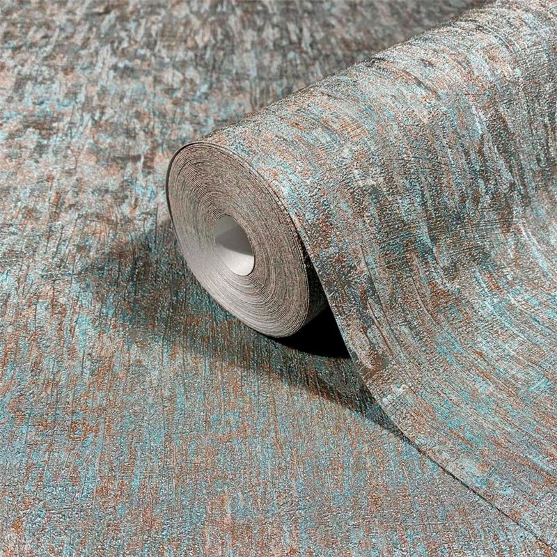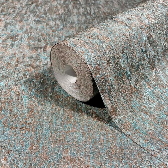Papel pintado aspecto hormigón cobre y azul industrial, ideal para destacar tus paredes. Marburg Ritus 35526.