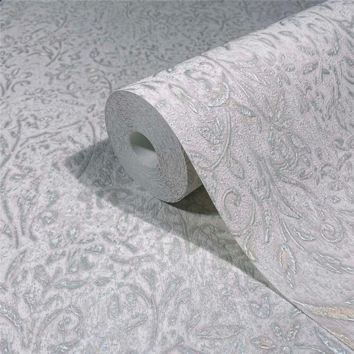Papel pintado floral ornamental gris y cobre damasco, ideal para interiores con estilo. Marburg Ritus 35534.