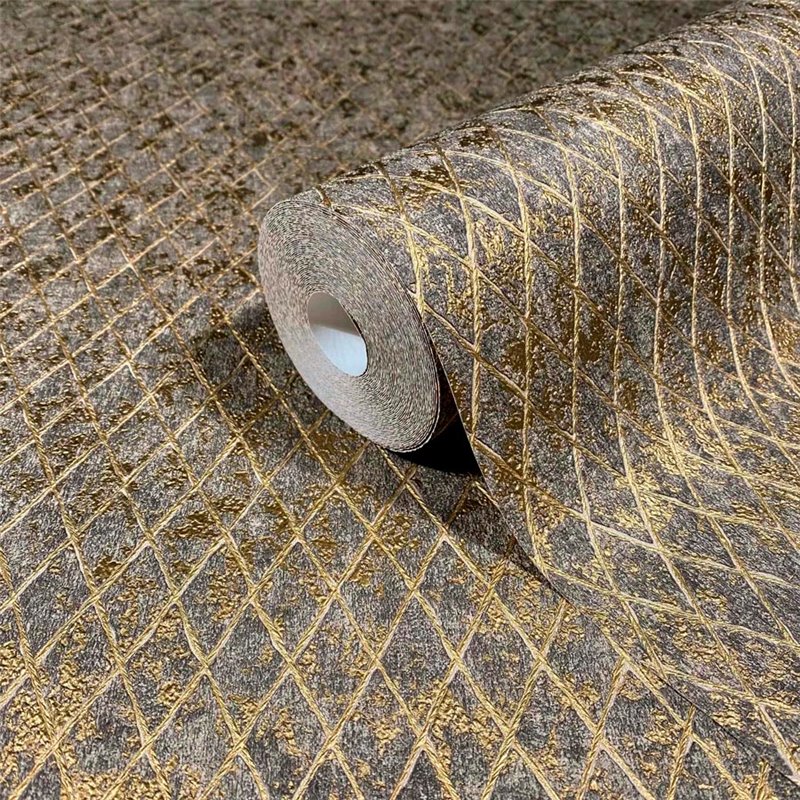 Papel pintado enrejado, patrón de diamantes gris oscuro, ideal para interiores con estilo. Marburg Ritus 35538.