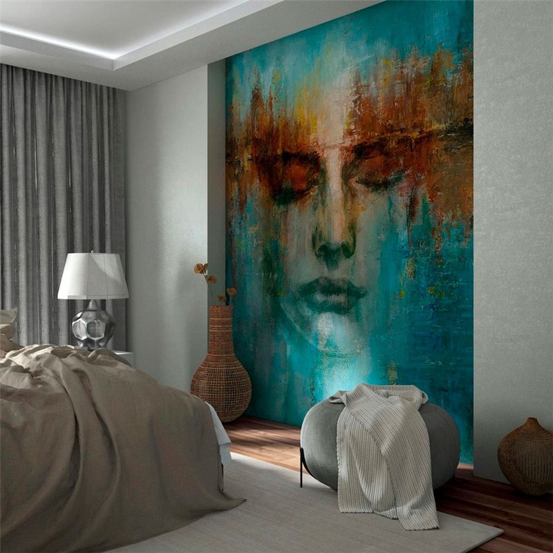 El mural de pared Marburg Ritus cautiva con un rostro etéreo que emerge entre brumas azules y matices dorados. Su composición artística evoca misterio, introspección y calma. Medidas: 212 x 270 cm