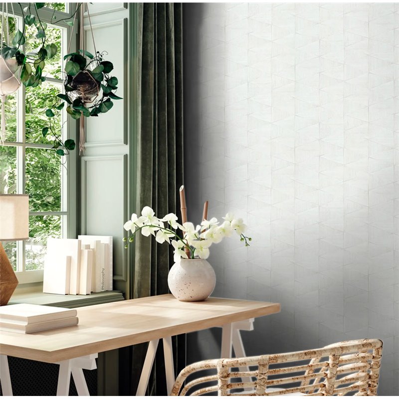 Papel pintado geométrico efecto madera blanco moderno