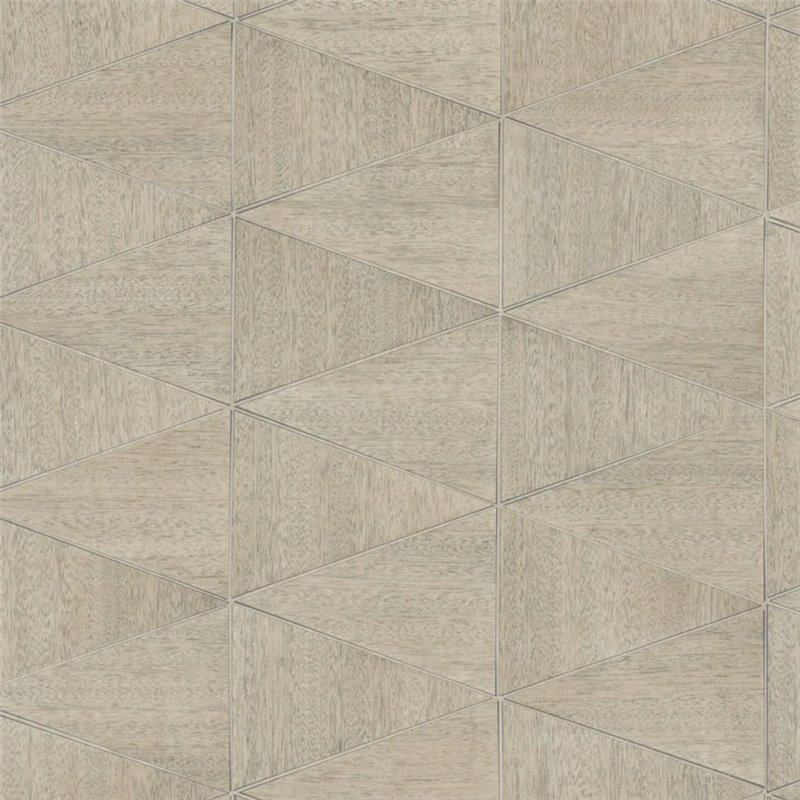 Papel pintado geométrico efecto madera gris y beige moderno, ideal para destacar tus paredes. Marburg Travertino 33357.