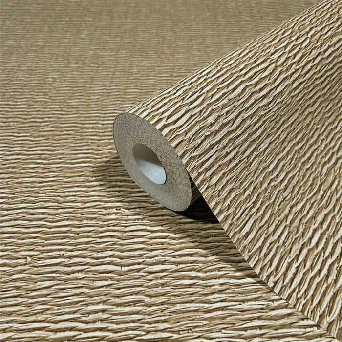 Papel pintado mimbre trenzado, rafia beige y marrón moderno, refleja buen gusto y modernidad. Marburg Travertino 33383.