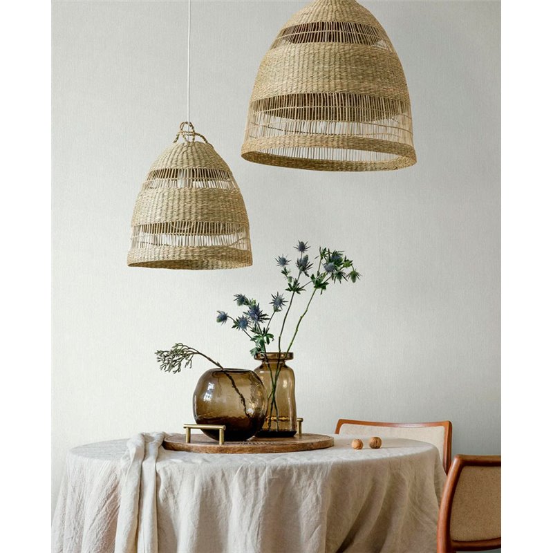 Papel pintado liso rayado beige claro moderno, con un efecto visual llamativo. Marburg Timber 35359.
