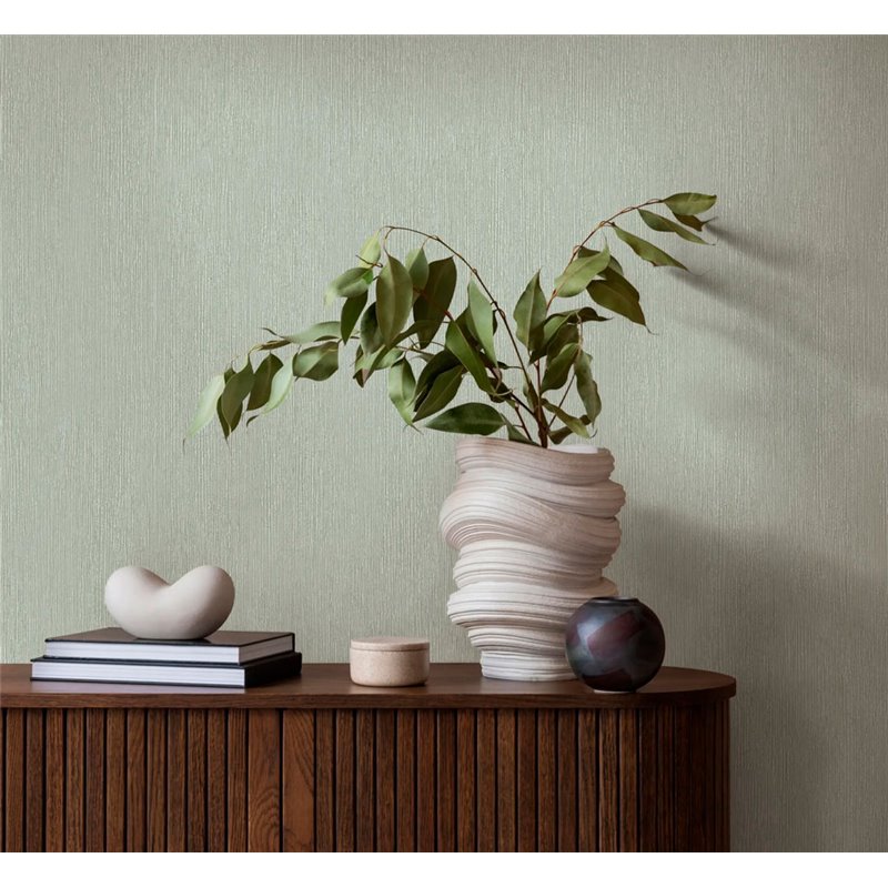 Perfecto para crear atmósferas únicas, papel pintado liso rayado verde claro moderno Marburg Timber 35360.