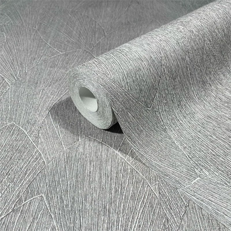 Papel pintado silueta de hojas gris claro moderno, una elección con mucha presencia. Marburg Timber 35383.
