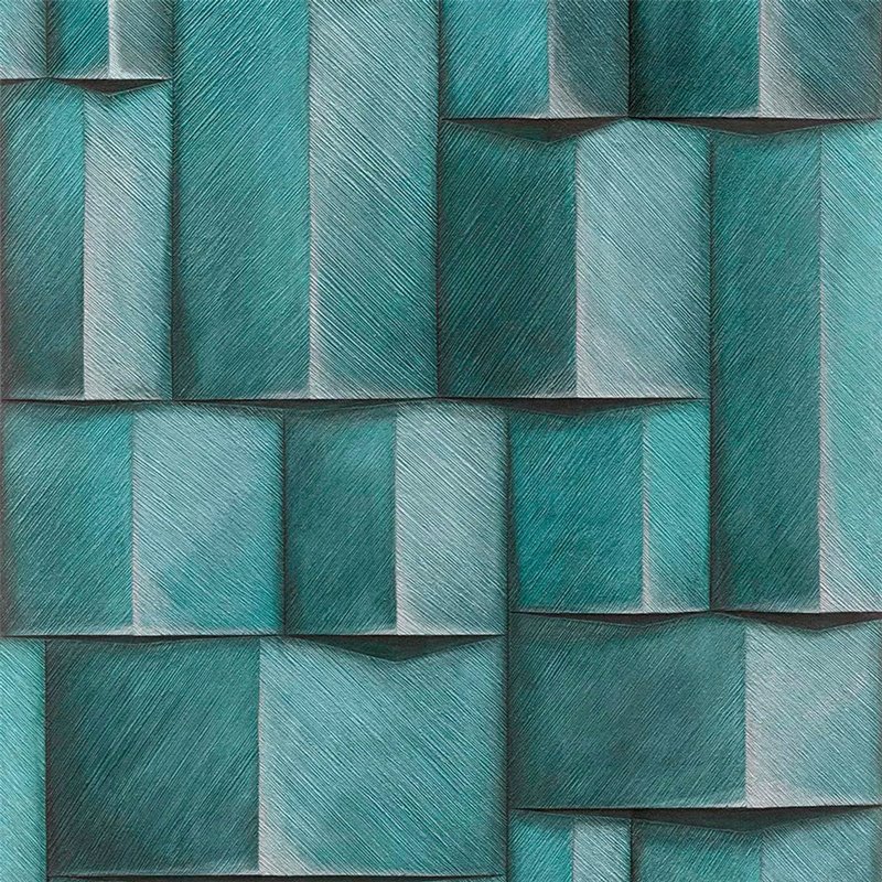 Papel pintado bloques madera 3D turquesa y azul moderno