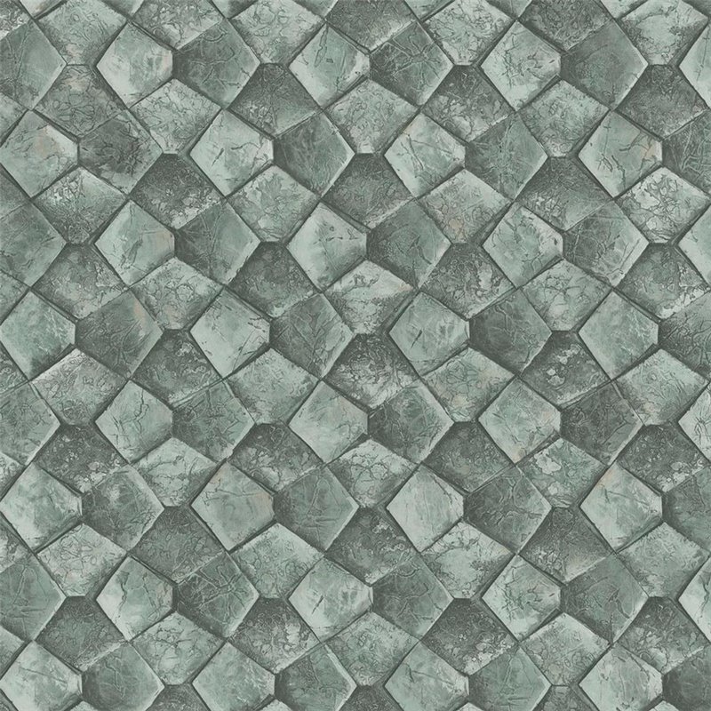 Papel pintado mosaico piedra dorado y gris, con un efecto visual llamativo. Marburg Eclectic 86528.