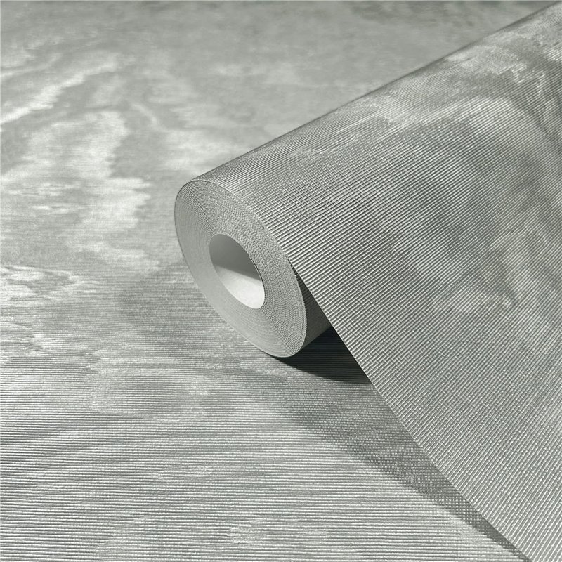 Papel pintado efecto seda gris antracita moderno, ideal para interiores con estilo. Marburg Eclectic 86543.