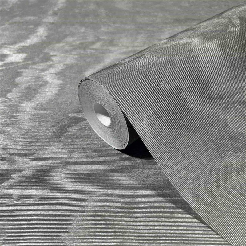Papel pintado efecto seda gris antracita moderno, ideal para interiores con estilo. Marburg Eclectic 86543.
