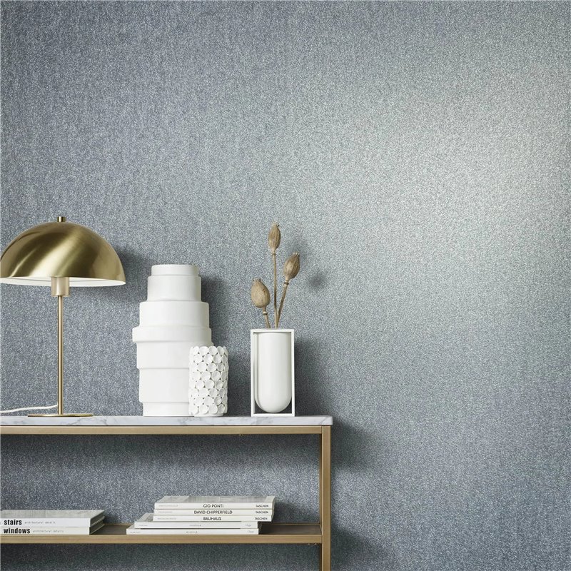 Papel pintado liso efecto cromado gris claro moderno, aporta elegancia y personalidad. Marburg Eclectic 86559.