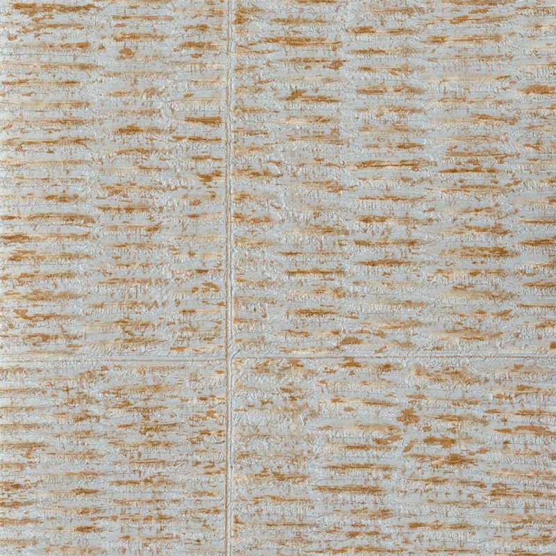 Papel pintado artesanal de mimbre blanco y dorado que combina tradición y elegancia brillante. Medidas del rollo: 1 x 10 metros