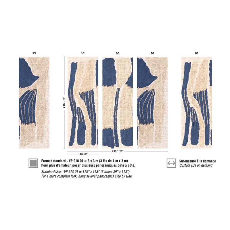El mural de pared La casa Azul VP 918 01 de Élitis destaca por su fuerza abstracta, con formas orgánicas en azul profundo sobre una base texturizada tipo mimbre trenzado. Medidas: 300 x 300 cm