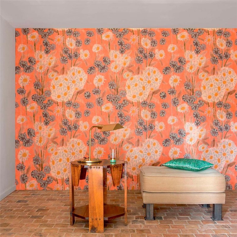 Papel pintado floral con grandes margaritas retro que aporta alegría y un aire nostálgico. Medidas del rollo: 1 x 10 metros