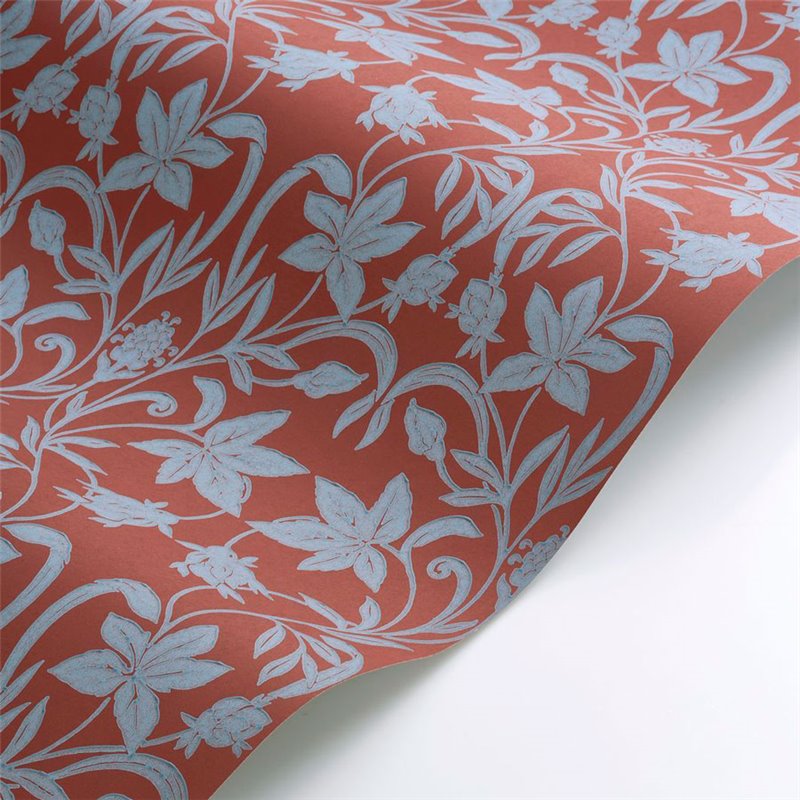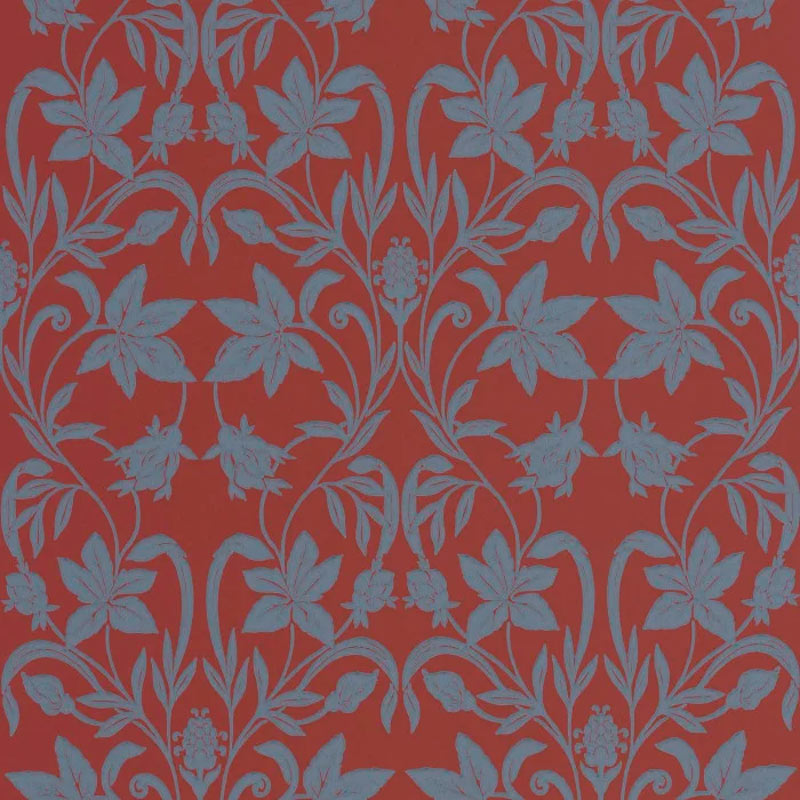 Papel pintado flores clásico rojo, tipo ornamental. Audaz para un salón elegante.