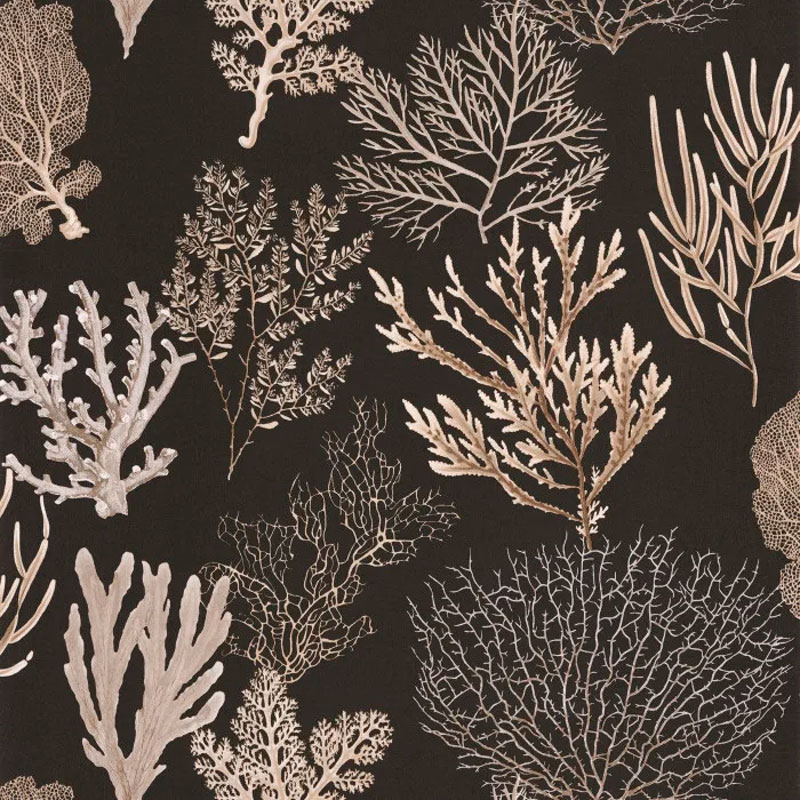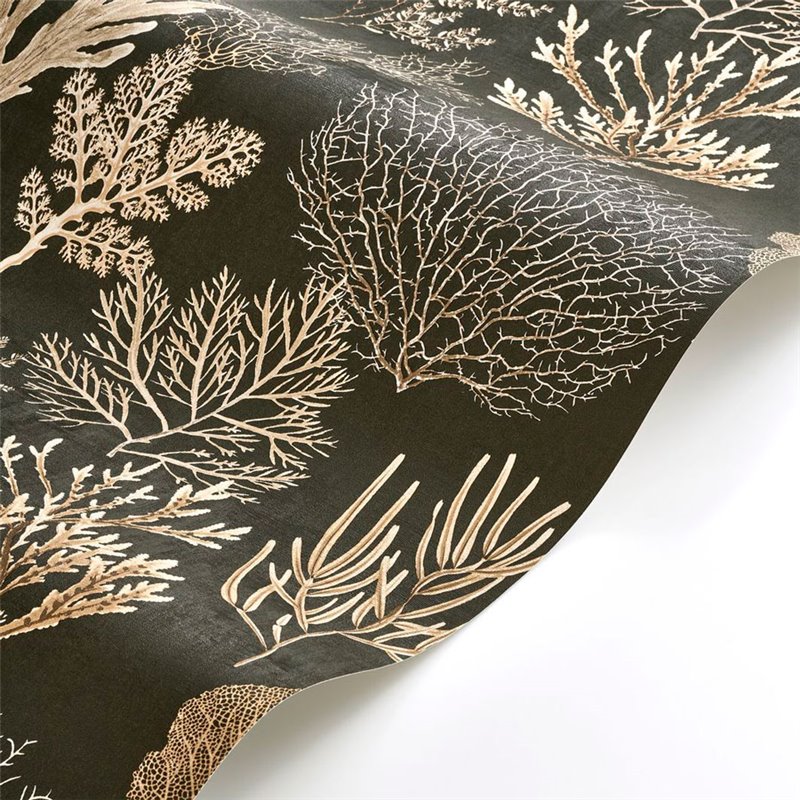 Papel pintado corales dorados con el fondo negro