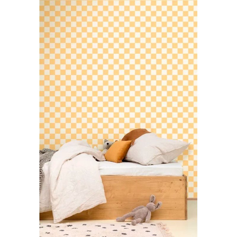 Papel pintado tablero ajedrés cuadros blanco y negro. Caselio Line Up, papel de pared calidad tejido no tejido lavable. Medidas: 53 cm x 10 metros